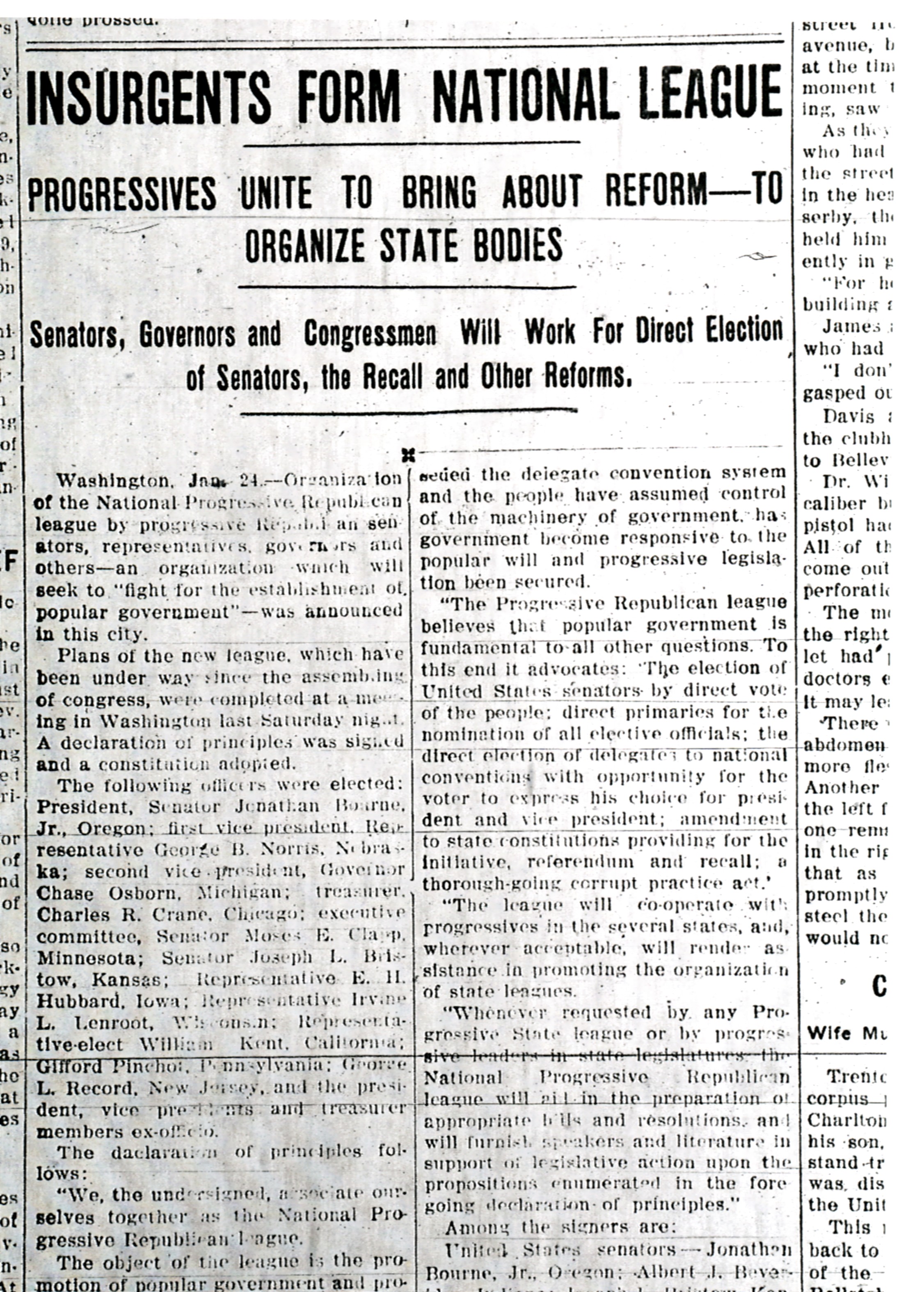 Senators, Governors and Congressmen Will Work For Direct Election of Senators, the Recall and Other Reforms