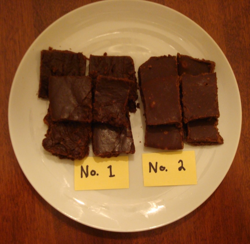After the fudge hardened I conducted a taste test with readily available people (in other words, with my husband).