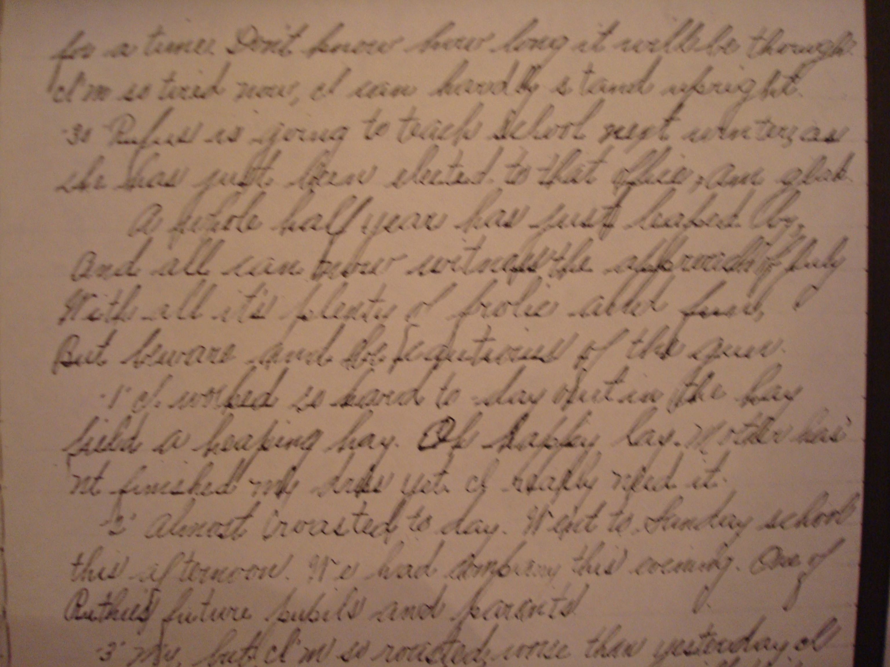 I worked so hard today out in the hay field a heaping hay. Oh happy day. Mother hasn’t finished my dress yet. I really need it.