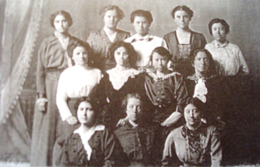Photo of Ruth at a 1913 teachers' meeting in Sunbury. She is the first person on the left in the second row. She's wearing a white blouse.*