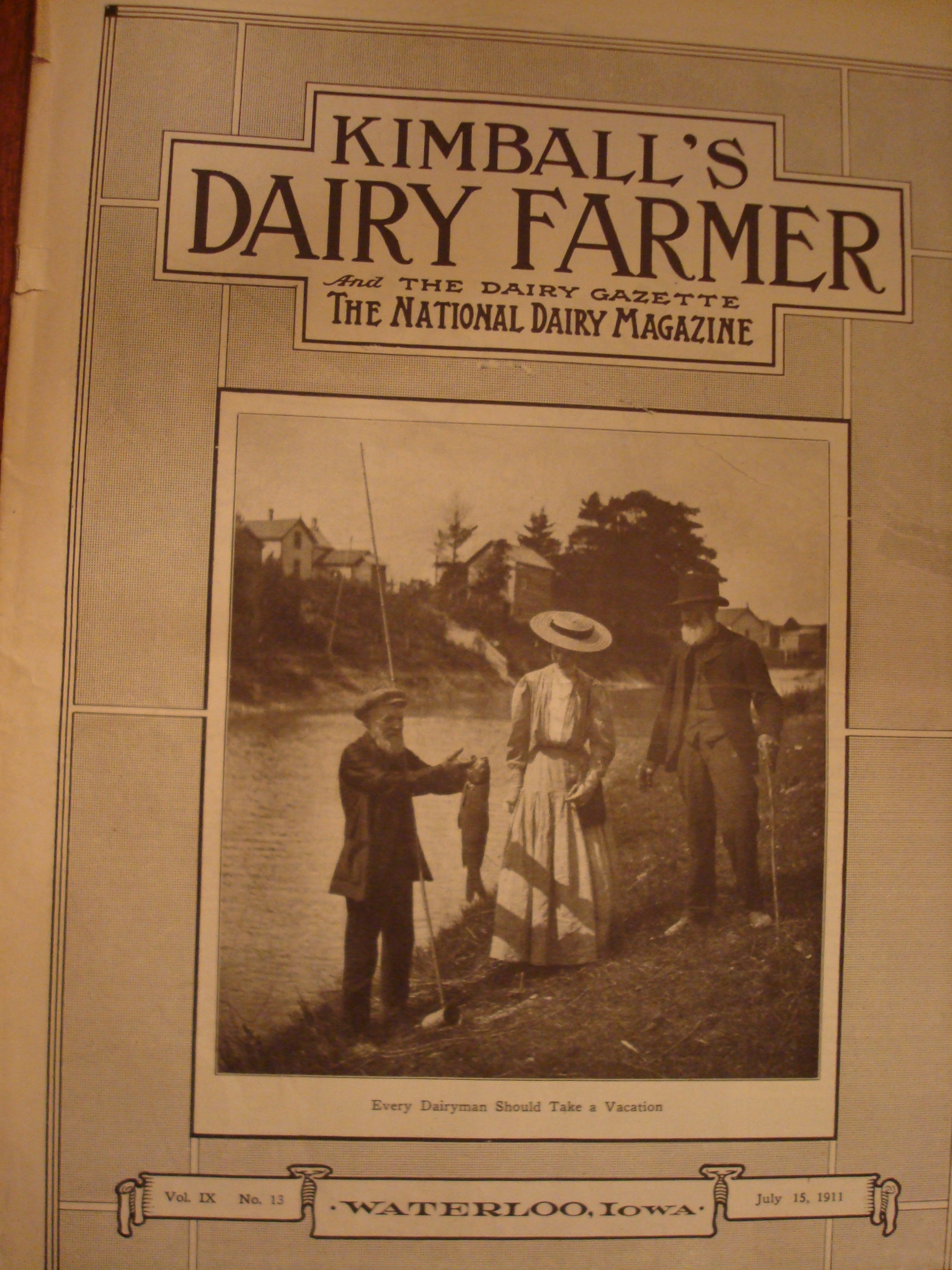 I was surprised to discover that my assumption was wrong and that some dairy farmers did take vacations a hundred years ago. The cover story in the July 15, 1911 issue of Kimball’s Dairy Farmer magazine recommended that dairy farmers take vacations.