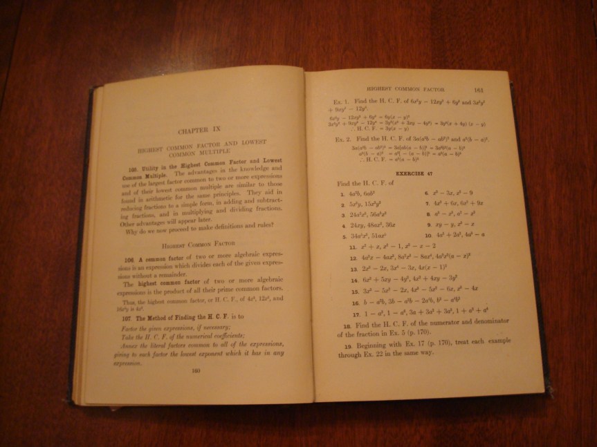 Based upon how she reacted during previous exam periods, I would have thought that she’d have waited until Sunday evening to get stressed. In yesterday’s entry she was struggling with L.C.M. (lowest/least common multiples) and H.C.F. (highest common factor) in algebra. Maybe she still doesn’t get them.