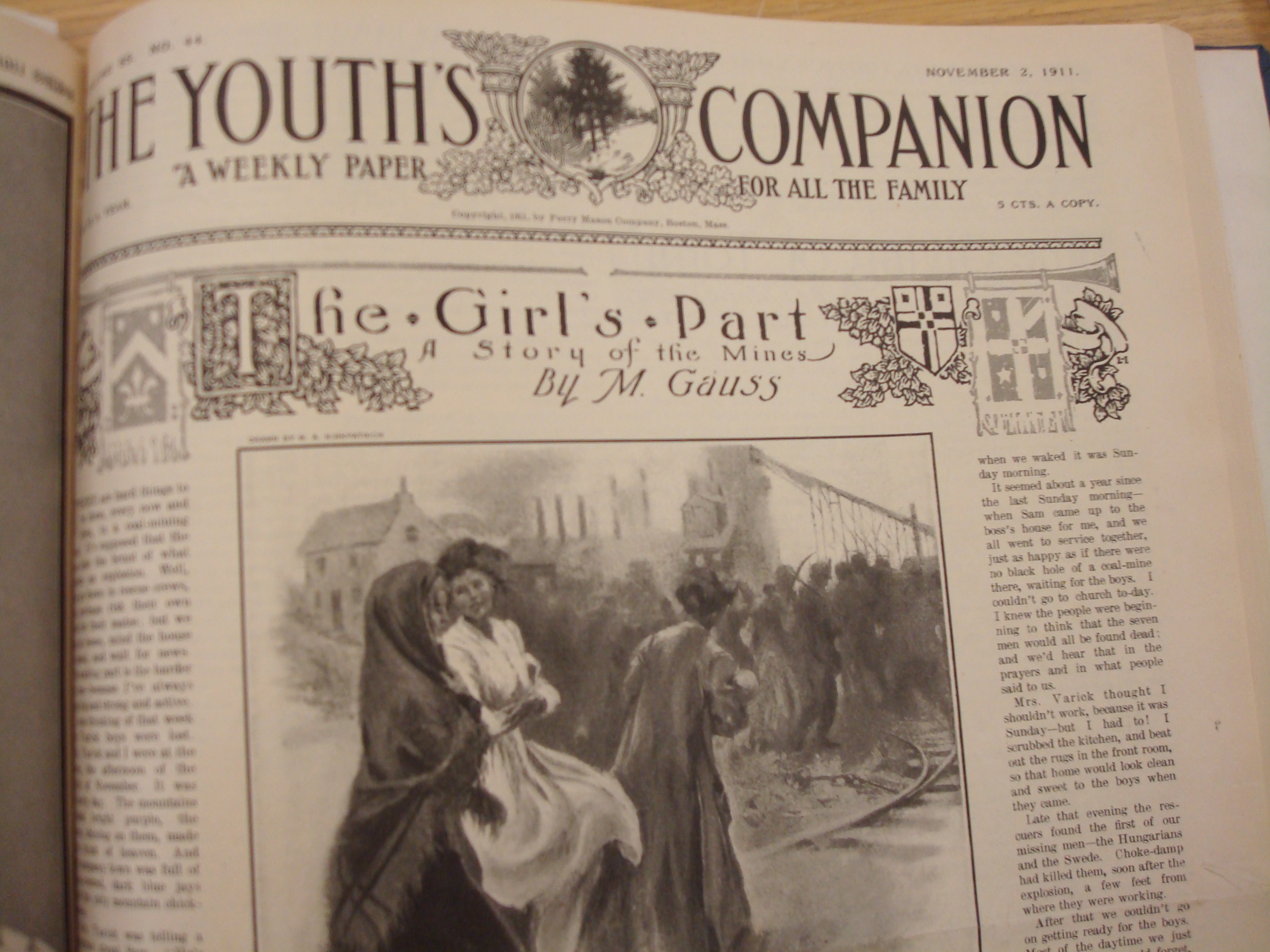 I just finished examining the contents of the November 2, 1911 issue of Youth’s Companion. Whew, it’s amazing and almost surreal that I can sit in a library and read the same words that Grandma read so many years ago.