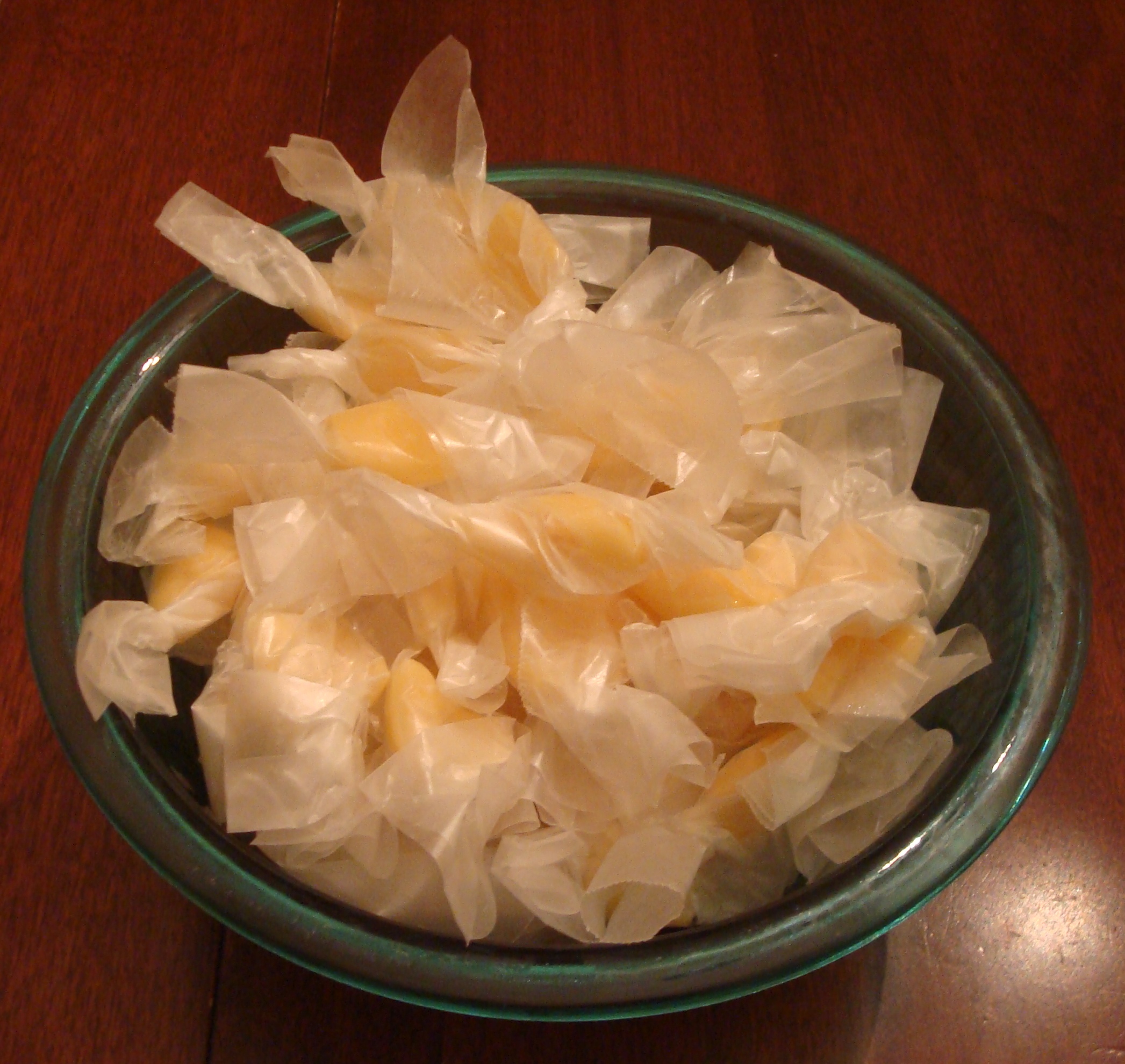 This is an excellent taffy recipe—and I really like that it doesn’t use corn syrup. The taffy was wonderfully creamy and smooth, and it has a nice flavor. It was almost too good–our family ate the entire bowl of candy in one week-end. (I’m trying very hard not to think about the calories.)