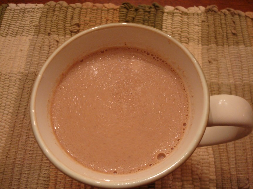 I poured the hot chocolate through a strainer before serving because I had problems with some of the egg white coagulating when I heated it. Maybe I didn’t stir rapidly enough when I added the coconut mixture to the hot milk. If I made the recipe again—I might just skip the egg white.