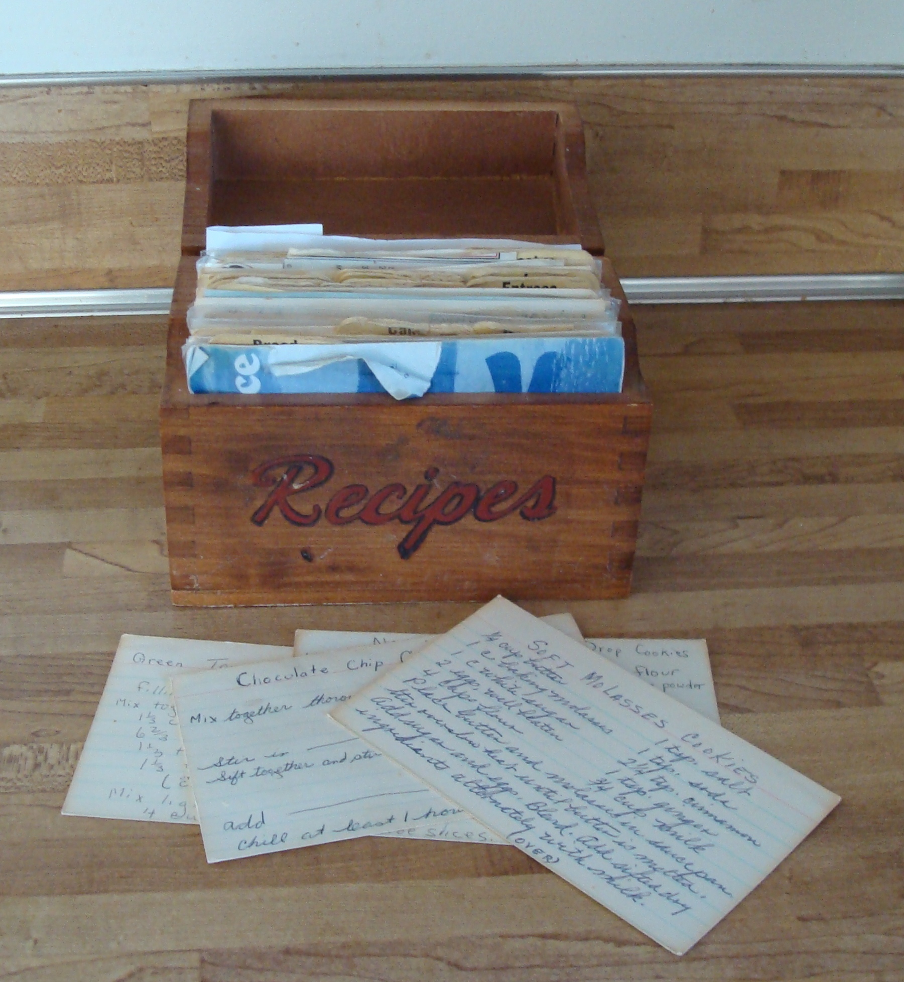 I have the recipe card box–but I also have file folders with print-offs of internet recipes and newspaper clippings of recipes tucked between the pages of cooks books. My adult children frequently asked me to email them family recipes–which I then needed to type into the computer. Two years ago I finally entered all of the recipes I regularly make into a Word document–and made a family cookbook. I made several copies for family members. My kids use the cookbook–but I think that I’m the person that absolutely loves it. I use it several times a week. I no longer need to search high and low for a particular recipe when I want to make something. I just go to my cookbook.