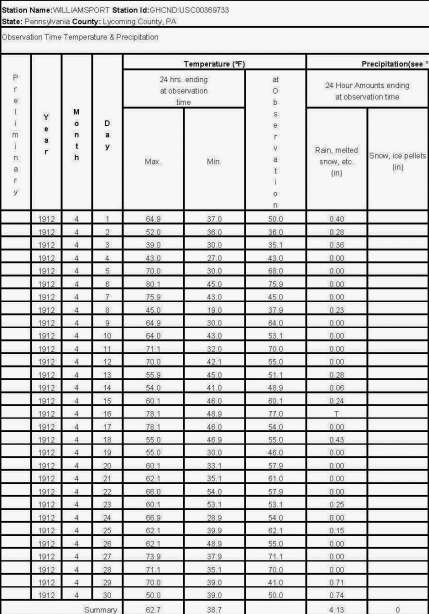 Well—it didn’t rain on April 24, 1912 (so I had to come up with another post title). It was just a blustery, raw, spring day.  A hundred years ago in nearby Williamsport, the low temperature was 28.9 degrees, the high was 66.9 degrees, and there was no precipitation.