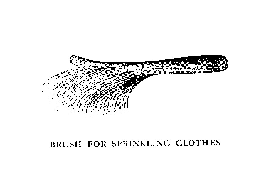 A laundress’s test for a hot iron is to hold it near her cheek for a few seconds. If too hot for this, it is too hot to use. [Comment—whew, this sounds dangerous. I’m amazed it was considered an “approved method” back then.]