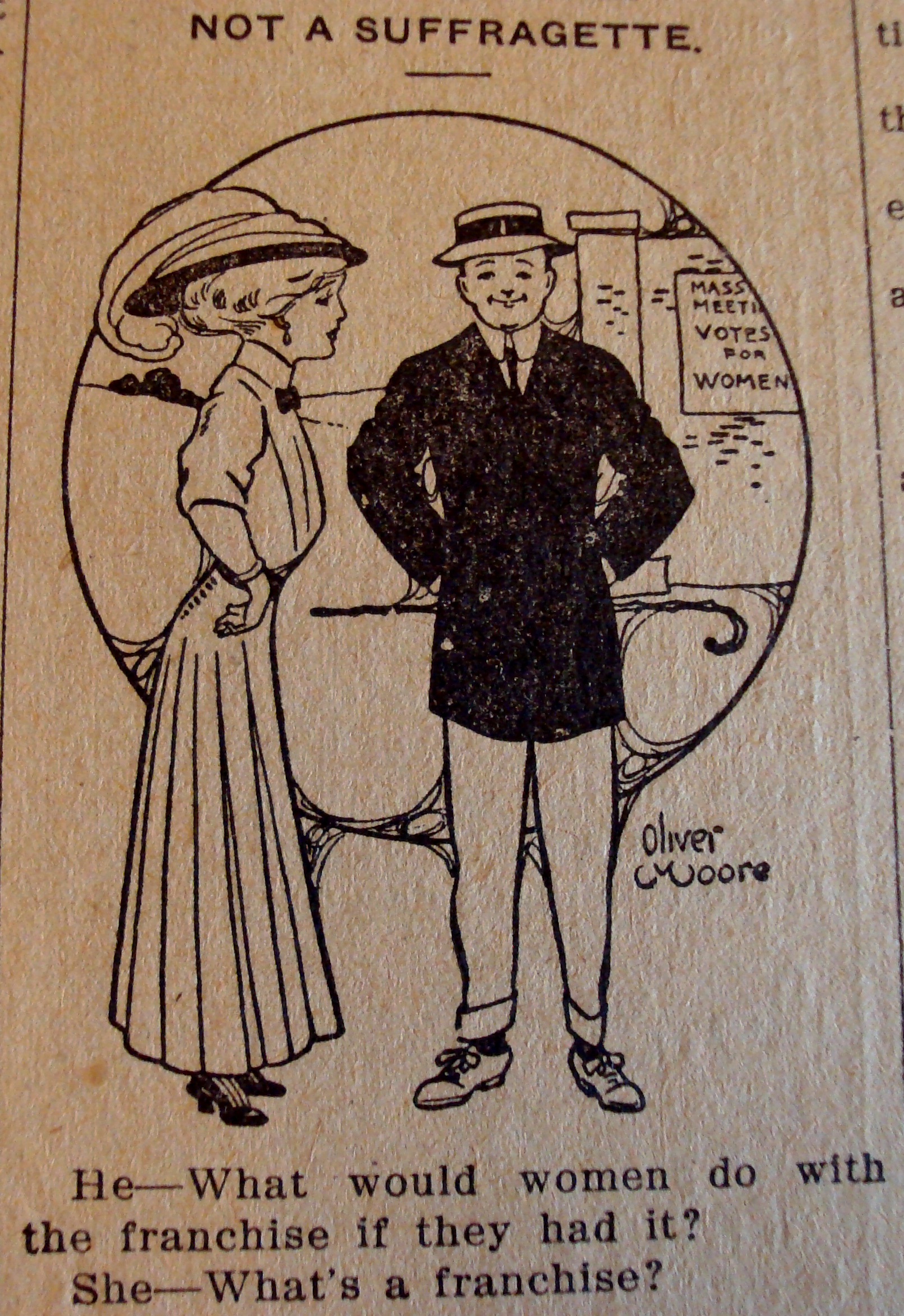 Today it’s hard to perceive why anyone would think that women shouldn’t have the right the vote—it’s interesting to get a sense of the opposite perspective from this cartoon.