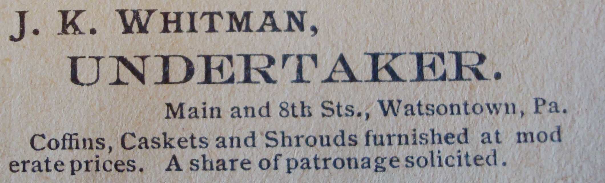 I found an advertisement by an undertaker in the nearby town of Watsontown. Her grandfather lived in another nearby town—Turbotville—so this probably was not the undertaker that the family used.