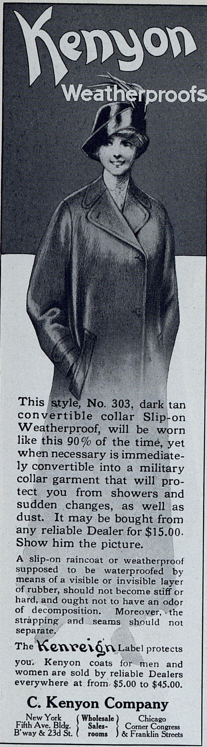 1914 Kenyon Weatherproofs Raincoat Advertisement