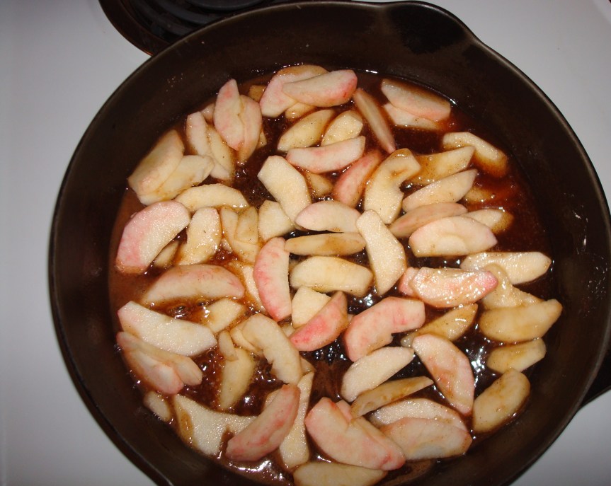 1. I think that it would work fine to make the sugar sauce on the top of the stove, then remove from the heat and stir in the apple slices. Pour it into a baking dish–then add the cake batter and bake.
