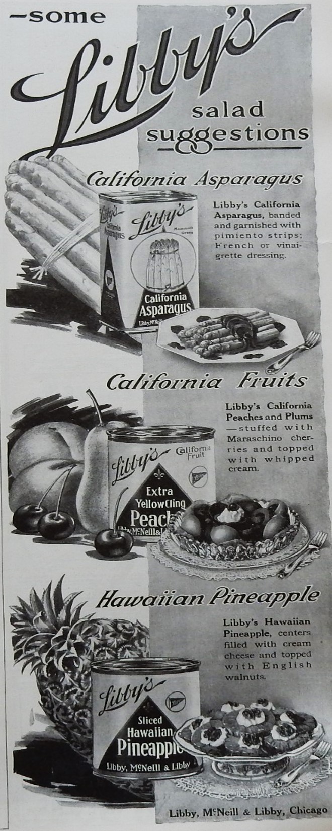 45 thoughts on “1916 Libby’s Canned Fruits and Vegetables Advertisement”