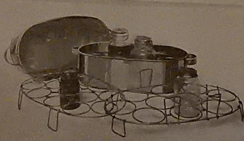 An excellent improvised canner is a wash boiler with a wire frames which may be purchased separately in sizes to hold gallon, quart, or pint jars. Any other receptacle with a tight-fitting lid may be used or an outfit may be purchased complete.