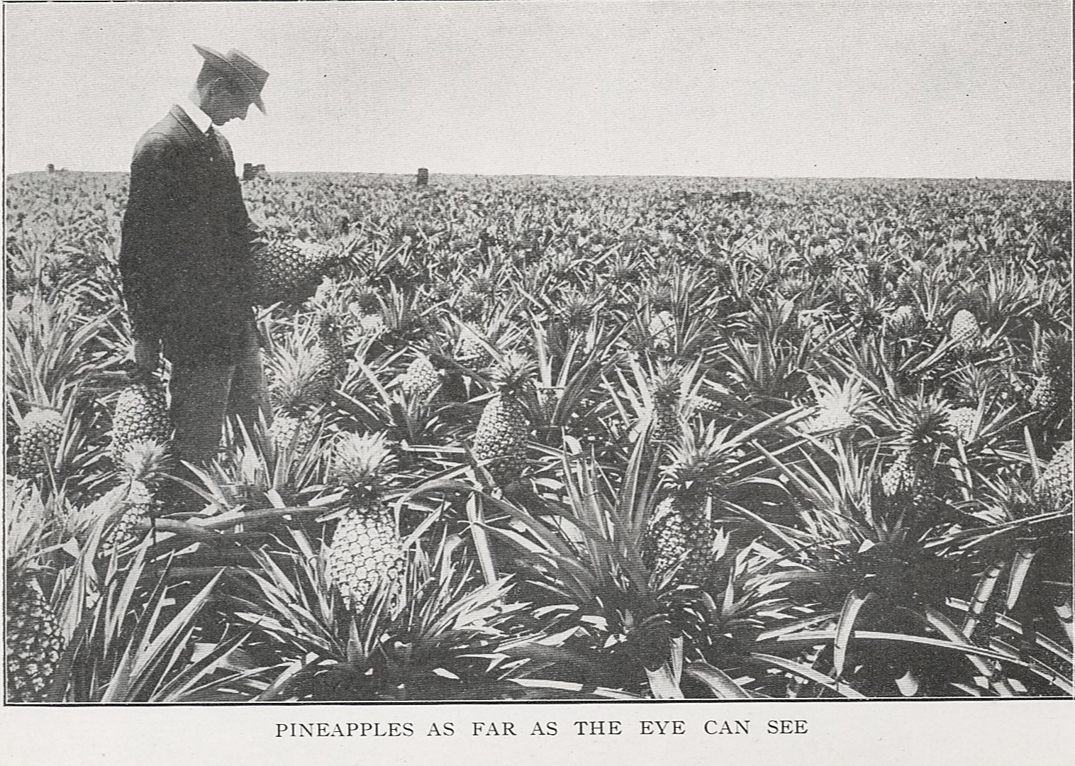 The Islands of Hawaii possess many interesting sights, but they have none that elicit more universal admiration from the tourist than the immense pineapple plantations, which, in some localities, spread over the landscape as far as the eye can see.  While pineapples are grown on nearly all of the islands of the group, by far the larger part of the acreage is on the capital island of Oahu.