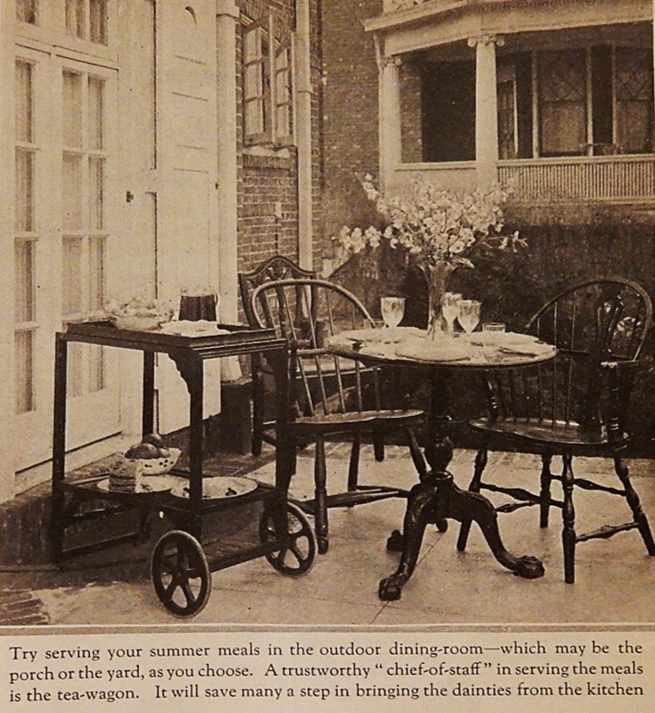 This week I was flipping through 1917 issues of Good Housekeeping, and low and behold, there was a photo of a tea wagon illustrating an article on “Outdoor Meals.”