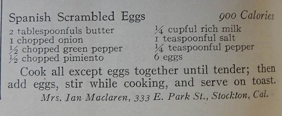 Spanish Scrambled eggs are colorful, tasty, and easy to make. These savory scrambled eggs have flecks of green pepper, pimento, and onion that delight both the eye and the taste buds. This recipe is a keeper.