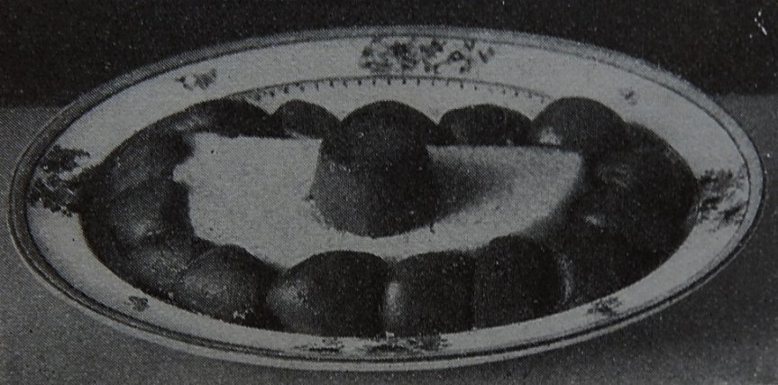 Photo Caption: Rice cooked with gelatin, molded when cold, and served surrounded with apricots makes a delicious dessert and a very healthful one. (Source: Good Housekeeping, November, 1917)