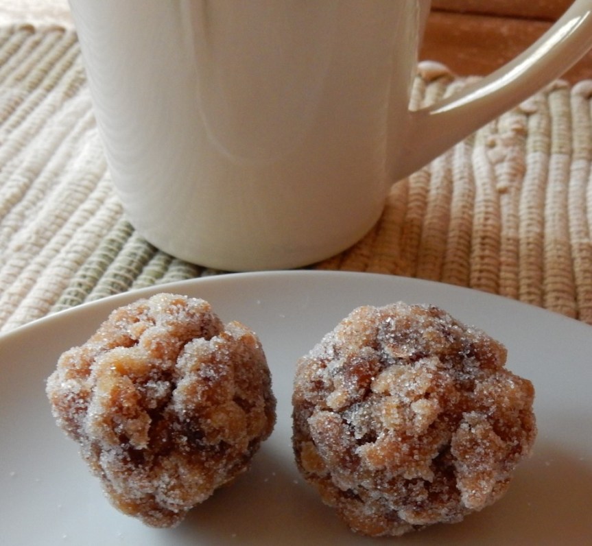 They were fun to make. The dough is spread thinly in a pan or baking sheet, and then baked until it just begins to brown. The baked dough is then removed from the oven, cut into pieces, and rolled into balls which are then coated in granulated sugar.