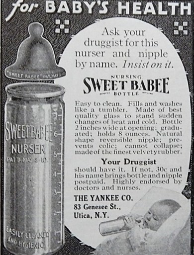 I learn so much from old advertisements. For example, commercially produced baby bottles have been around for more than a hundred years.