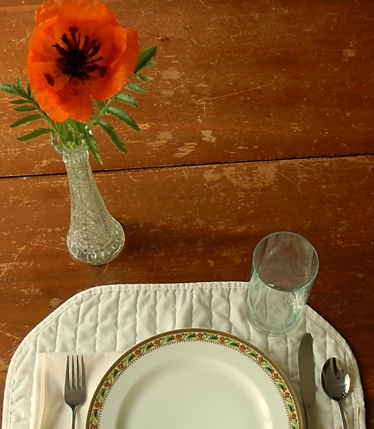 Unfortunately, I failed to get organized enough to invite friends over, Not to be deterred,  I cut a poppy and popped it into a bud vase, got the good china out – and had a delightful poppy luncheon for one.