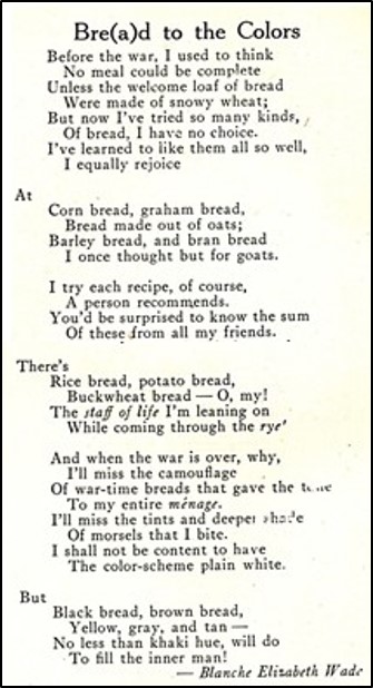 I can learn a lot about what it was like a hundred years ago by reading old poems. For example, this fascinating poem provides lots of details about what people in the U.S. ate during World War I.
