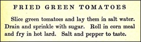 You’re welcome! I agree – fried green tomatoes are quite tasty.