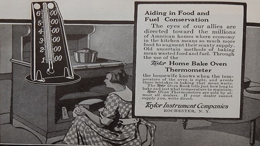 I was surprised to see an advertisement for a oven thermometer in the February, 1919 issue of American Cookery magazine. Cooks had a bit more information about oven temperatures than I’d previously realized.