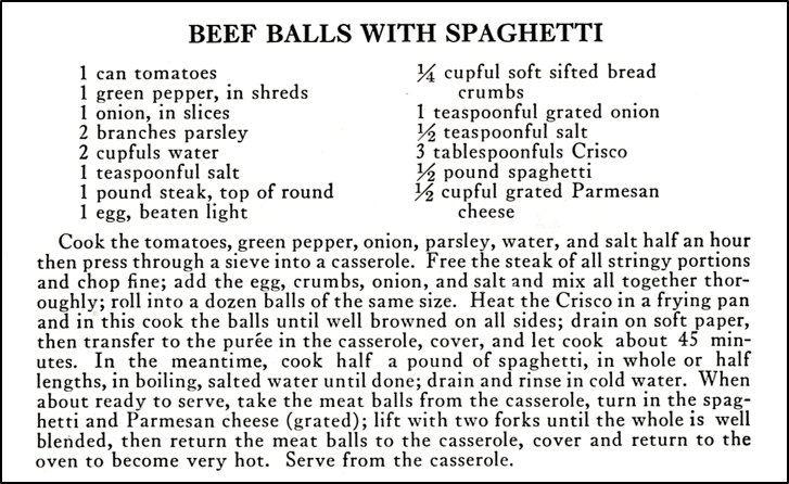 There are some foods where the recipes were just plain different a century ago than what they are now. Spaghetti is one of those foods. Modern marinara sauce recipes often call for basil and oregano, but those spices are seldom seen in old recipes.