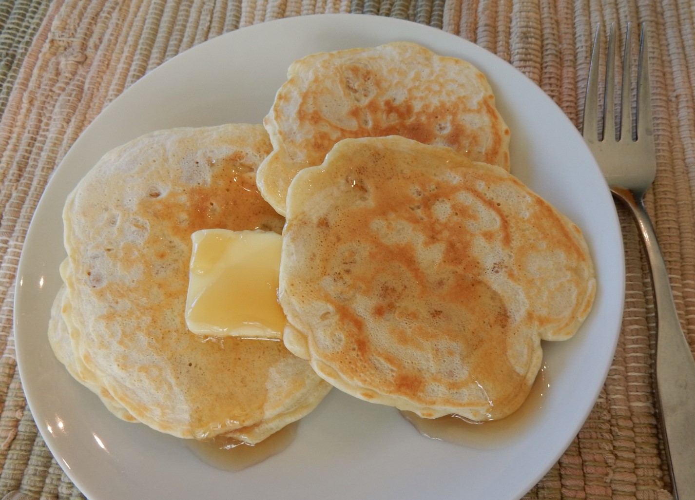 And, even though I am somewhat biased against using highly processed foods as an ingredient, I must admit that the Corn Flake Griddlecakes were delicious. They were thick, yet light, with just a hint of the toasty corn flakes.