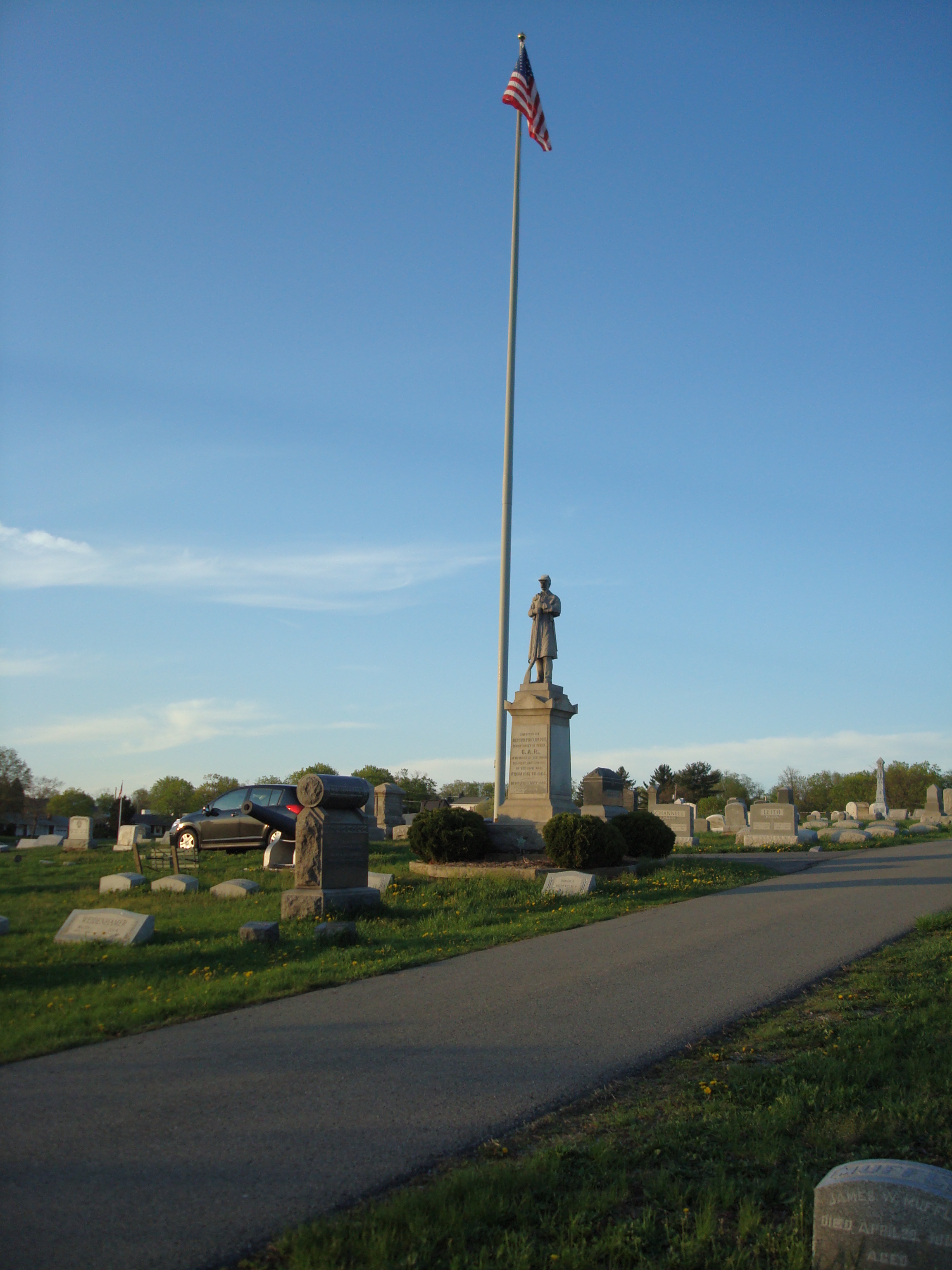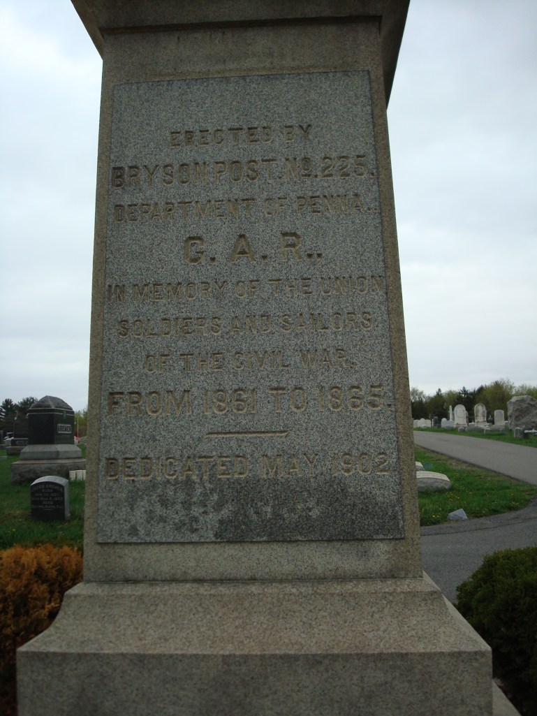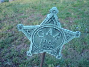 The cemetery is dominated by a memorial to Civil War veterans. According to the engraving on the base of the monument the memorial was built in 1902—so it would have been less than 10 years old when Grandma and Carrie visited the cemetery. The memorial probably was built with funds raised by aging GAR (Grand Army of the Republic) veterans who didn’t want the war to be forgotten after they passed on.