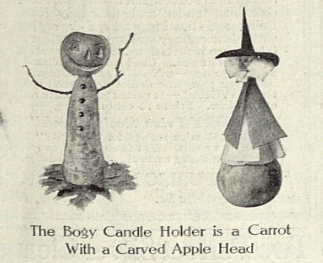 Were they making any Halloween decorations? . . . Maybe the carrot and apple head bogeyman shown in the October, 1913 issue of Ladies Home Journal?