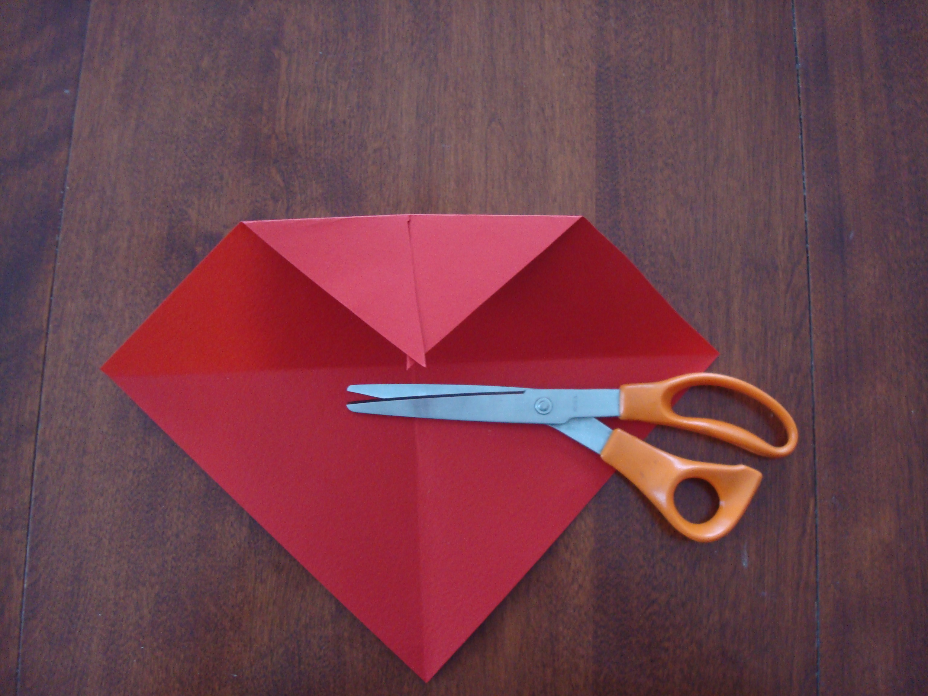 A square piece of heavy craft paper is used to make the box. To measure a square, take one corner of the paper and fold to the opposite side. Cut the paper to create the square.