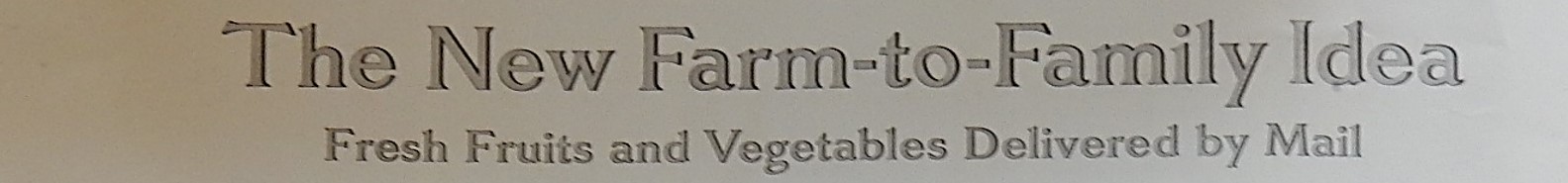I can get great locally-grown produce at the farmer’s market, or I could join a community supported agriculture (CSA) group and pick up wonderful local foods at a nearby drop point — but I dream of curated farm-fresh food coming right to my door on a regular basis. I long for the good old days. A hundred years ago families in the New York City area could get fresh fruits and vegetables from Long Island in the mail.