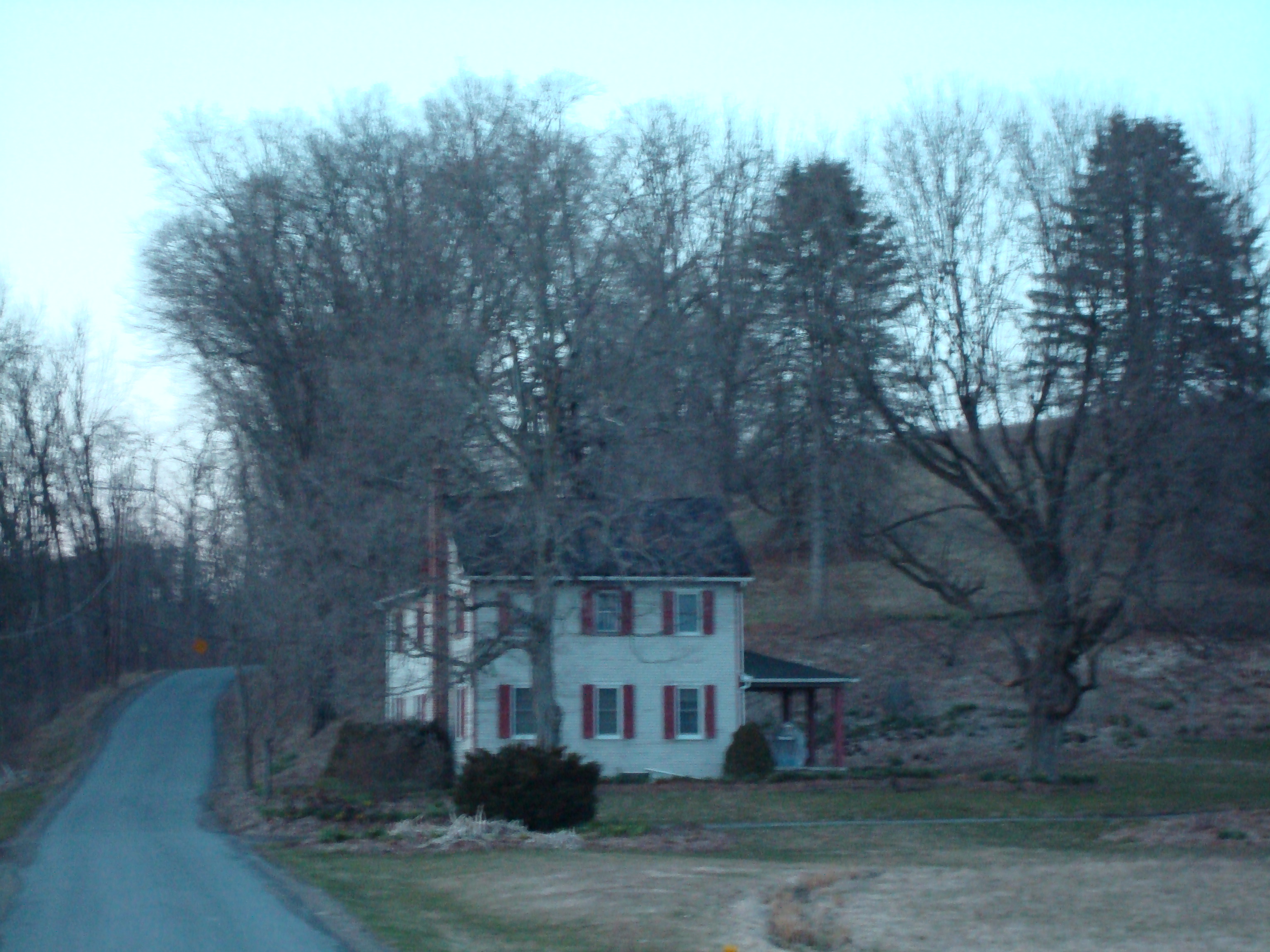 Recent photo of the house Grandma lived in. The photo was taken at dusk on a December day.