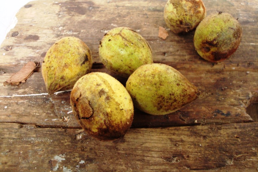 I love the bold, earthy taste of black walnuts – but seldom see them in stores, so I often forage for them. One of my favorite autumn activities is gathering black walnuts, hulling them (oh, what mess!), and then on a cold winter day cracking them to get the nut meats out. I now have a jar of black walnuts in my refrigerator so was excited to see a recipe for Walnuts and Sweet Potatoes that called for black walnuts in a hundred-year-old cookbook.