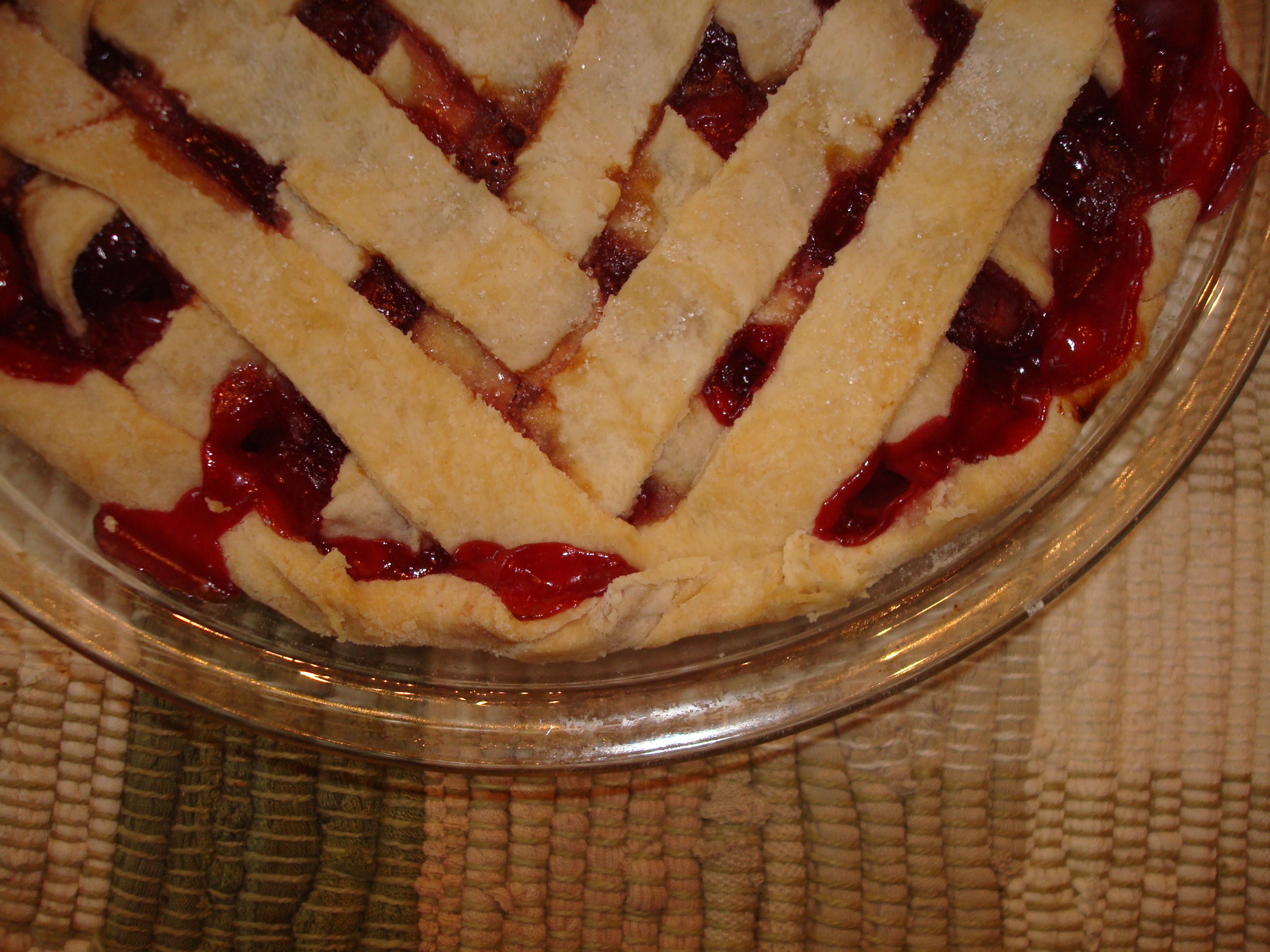 In the meantime, melt the butter in a saucepan. Stir in the flour, then gradually add the cherry juice while stirring constantly. Stir in the cherries. Continue heating and stirring until the mixture boils. If the cherries were canned in water (rather than a sugar syrup), add sugar to taste. Remove from heat.