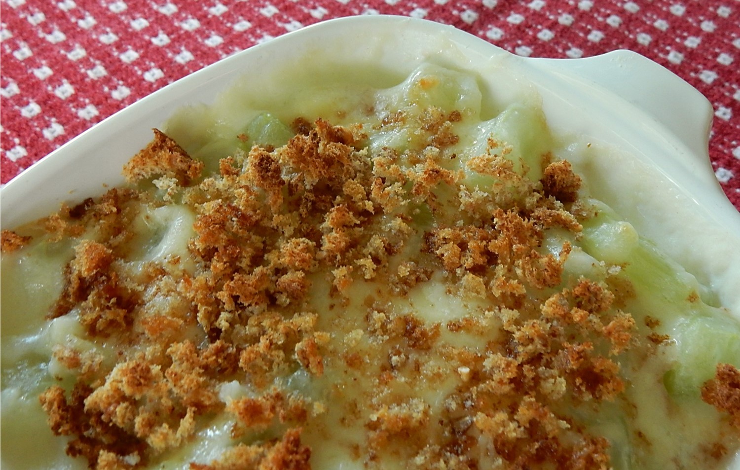 Cucumbers are a vegetable that I generally either slice and eat raw or pickle, but there are some recipes in hundred-year-old cookbooks that call for baking them. I decided to give a 1925 recipe for Stuffed Cucumbers a try. The cucumber shells were stuffed with a mixture containing the seedy pulp from the center of the cucumbers, chopped onion, chopped nuts, and egg white. The Stuffed Cucumbers were topped with breadcrumbs and then baked.