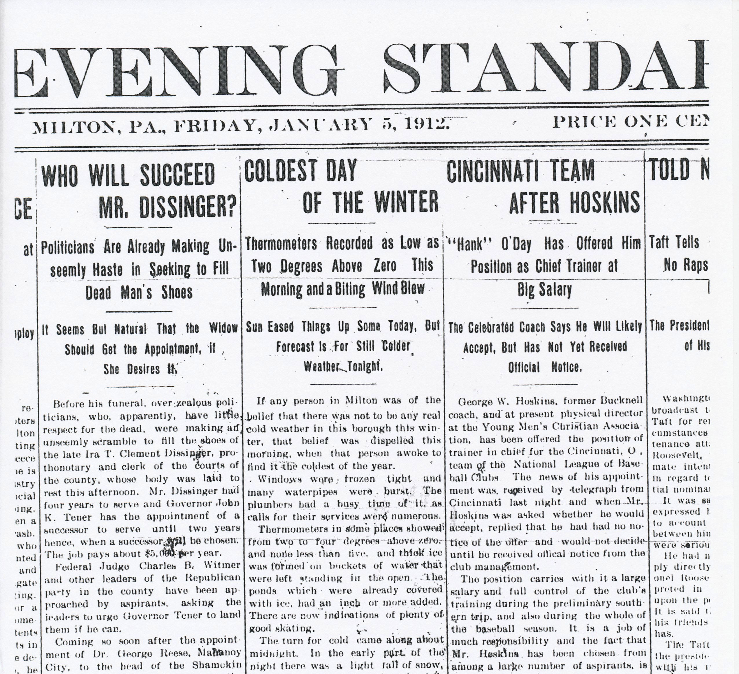 Milton Evening Standard (January 5, 1912)