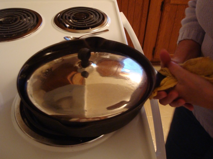 The recipe says that the syrup should be boiled until “it will harden when dropped in cold water.” I interpreted this to mean that it should be cooked until it reaches the hard ball stage (260° F.)