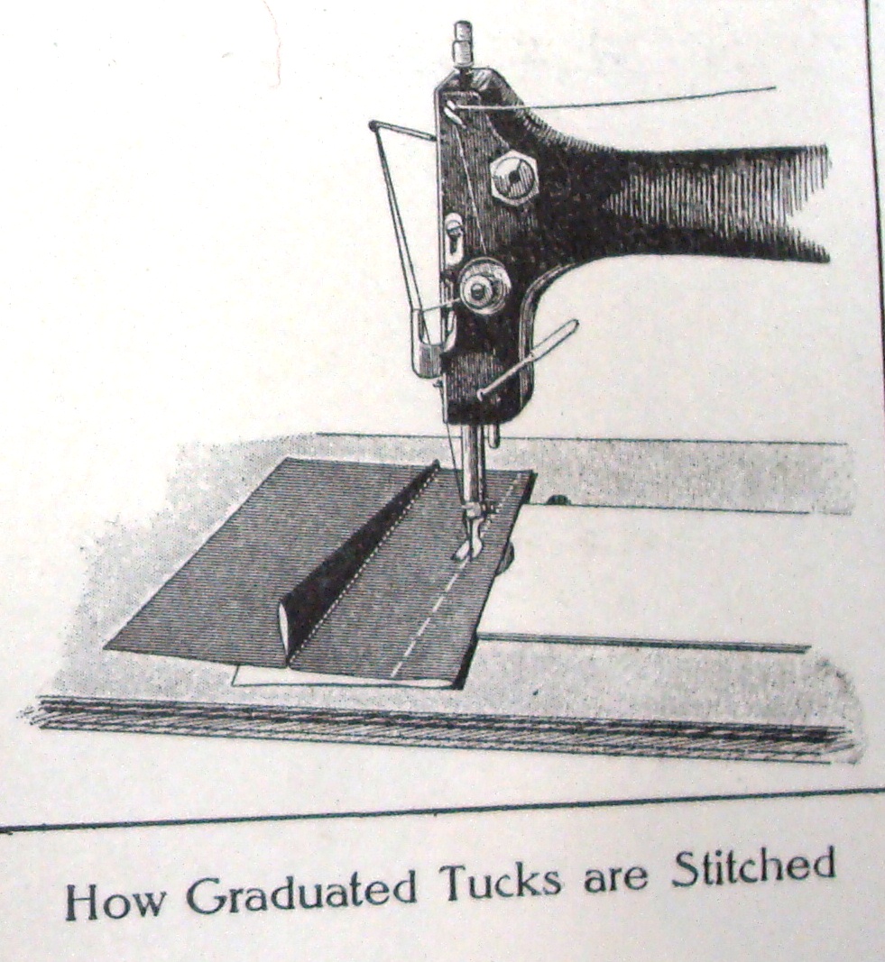 In making up heavier goods such as a petticoat of sateen, you will find felled seams are the best. There are two different kinds of these. One is made by opening out an ordinary seam of three-fourths to one inch on the wrong side, turn under the edges and sew down. This is a good seam for baby’s night-gowns since it is the least bunglesome. However, it is not so strong as the single felled seam which is made as follows. Allow one-edge of an ordinary seam to extend out about one-fourth inch over the other. Turn a small hem on this and basted down over the other edge and sew firmly.