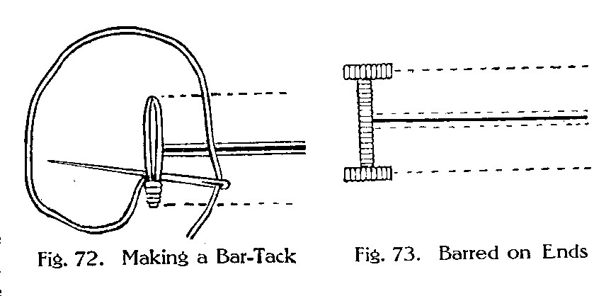 The bound seam is used to finish joinings in dresses or skirts of heavy material and is made by binding the edges of an ordinary seam with seam binding which comes for this purpose.